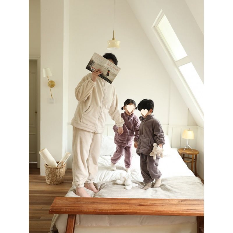 بدلة منزلية للخريف والشتاء من Xili مصنوعة من الصوف المرجاني الكوري سميكة للأطفال الأولاد والبنات بيجامات مقاومة للبرد بدلة للزوجين