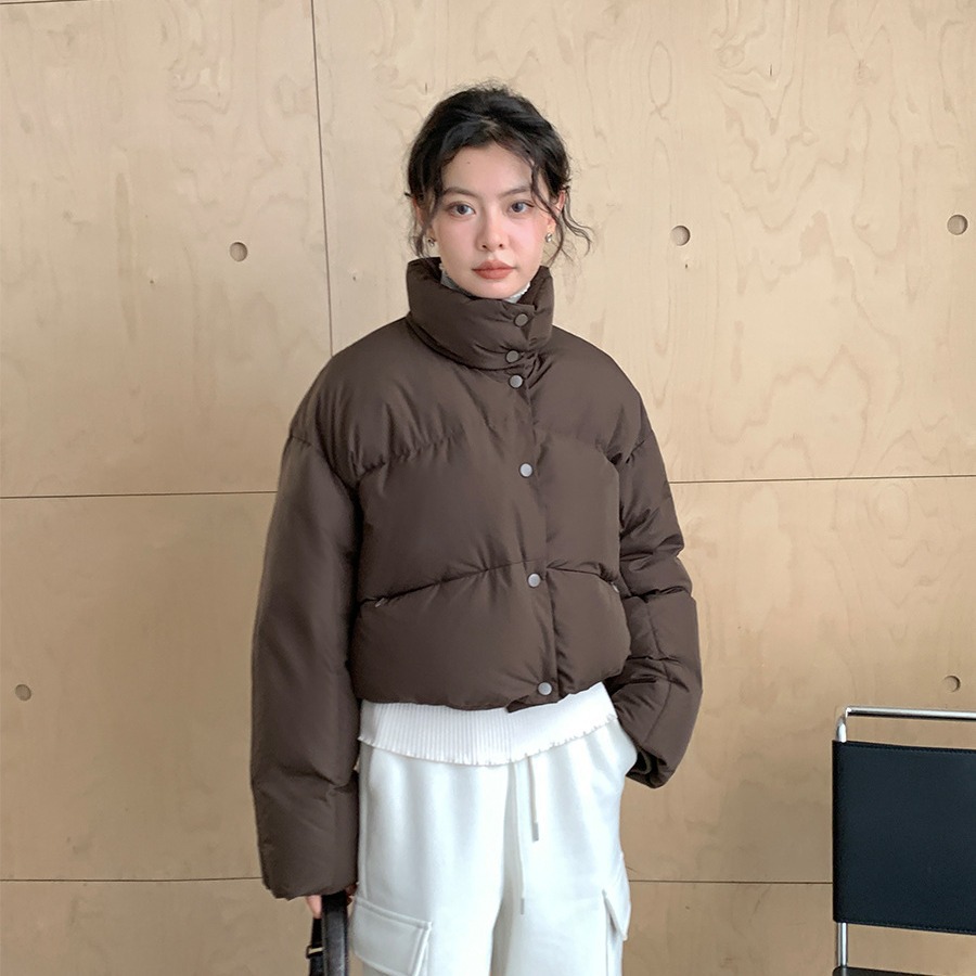 سترة شتوية من Love and Nancy بثلاثة خطوط 2023 على الطراز الكوري من Maillard وياقة واقفة ومبطنة قصيرة بنمط Ken Bean 24606