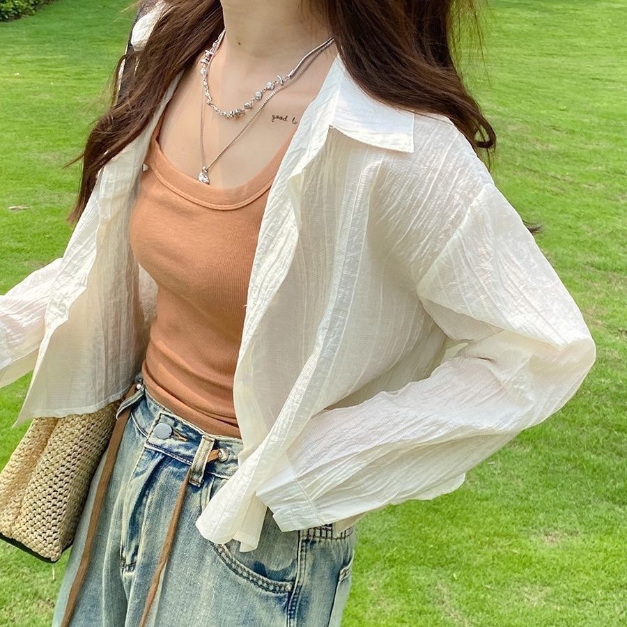 بدلة حماية من الشمس قصيرة للغاية على طراز العطلة لصيف 2024 سترة صوفية جديدة فضفاضة ورقيقة بأكمام طويلة