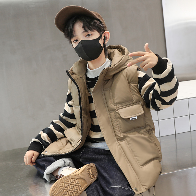 ملابس أطفال سترة قطنية للخريف والشتاء للأولاد 2023 ملابس شتوية جديدة للأطفال سميكة بقلنسوة معطف أنيق متوسط وكبير للأطفال