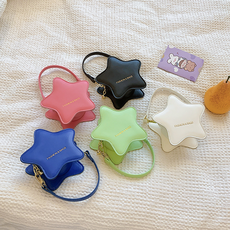 حقيبة كتف للأولاد والبنات على الطراز الكوري، حقيبة أطفال أنيقة صغيرة رائعة ومبتكرة ستار، حقيبة أطفال محمولة جديدة بلون واحد