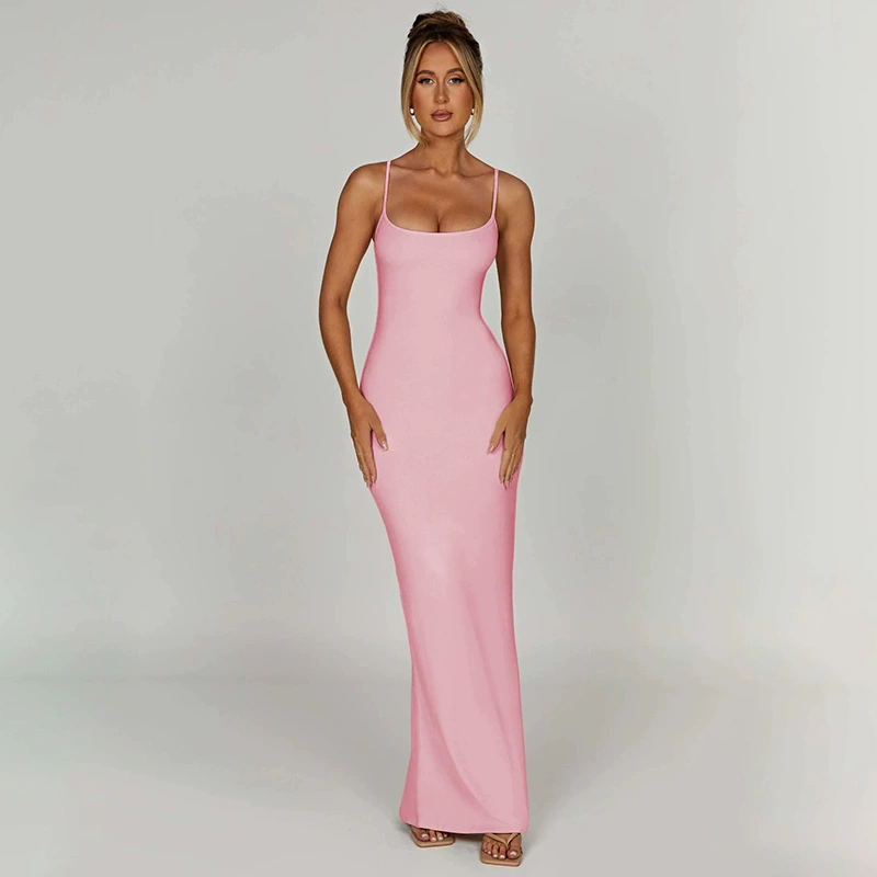 فستان مرقع مفتوح الظهر معلق فستان مرقع نحيف مفتوح الظهر للنساء