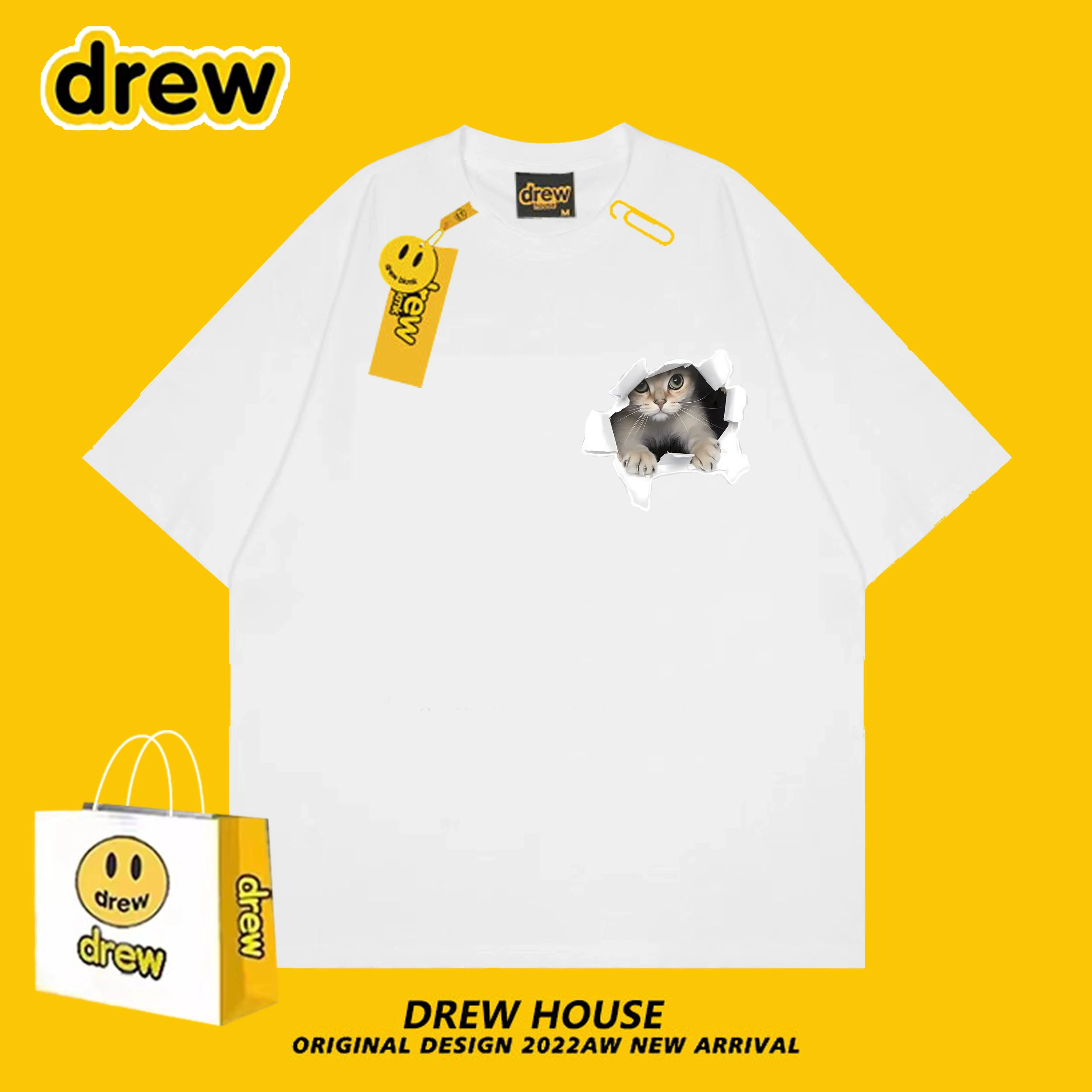 درو يبتسم قطة لطيفة كاجوال بأكمام قصيرة