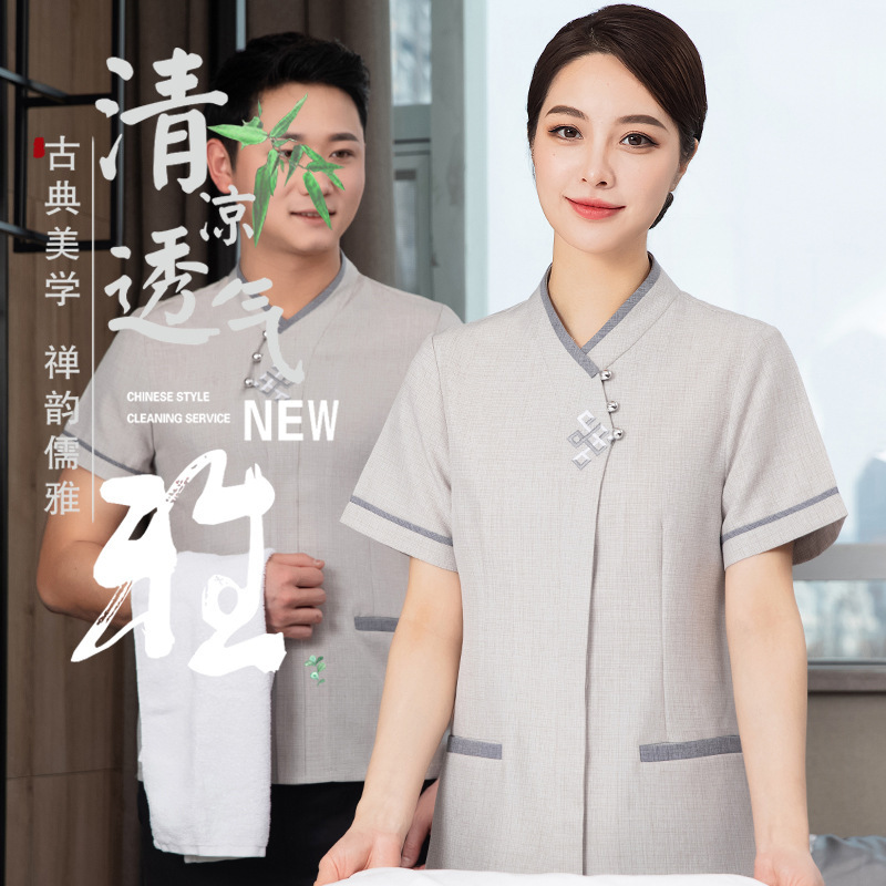 ملابس عمل للتنظيف بأكمام قصيرة، ملكية نسائية، مركز تسوق، فندق، غرفة الضيوف، منظف الفندق، عمة PA، بدلة صيفية موحدة