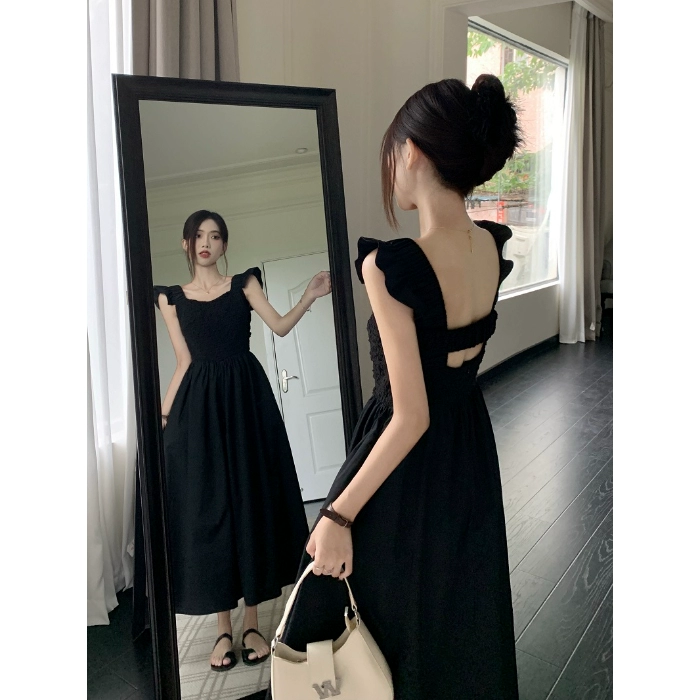 التجاعيد والعودة في فستان منتصف الطول في الربيع