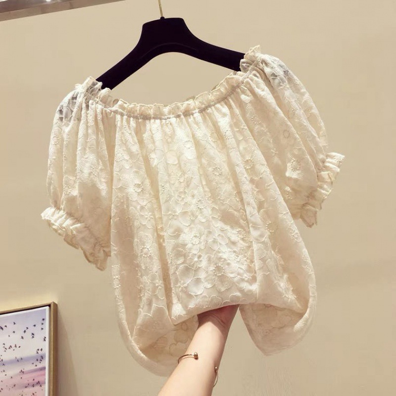 قميص شيفون برقبة واحدة وأكمام قصيرة 2024 نمط جديد للمرأة الصيف عصري أنيق مفتوح الكتف الأزهار مع بطانة