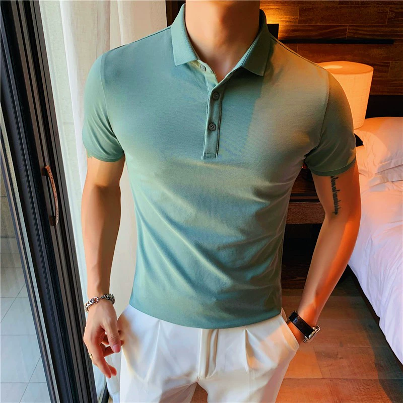 تي شيرت صيفي نحيف على الطراز الكوري بلون سادة، قميص بولو بنصف كم
