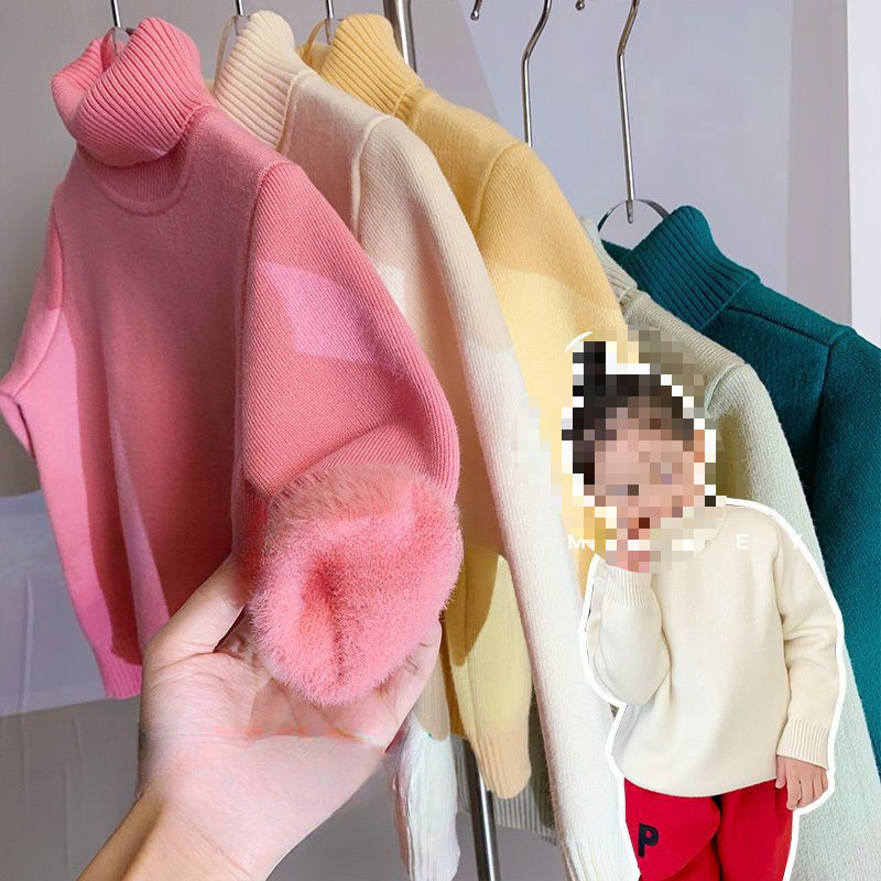 سترة للأولاد والبنات مبطنة بالصوف قطعة واحدة مخملية سميكة عصرية بياقة مدورة للأطفال قميص شتوي 0158A036