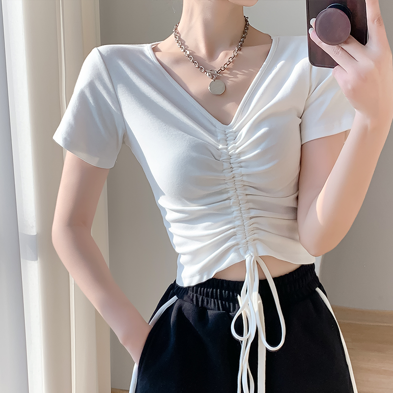 Celacium Design Design Drawing Rope Short -Sleeved Slim Top T -Shirt T -Shirt