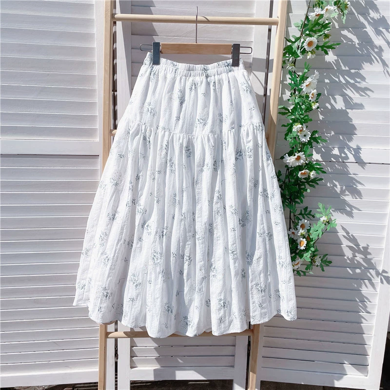 ربيع القطن النقي محلي الصنع والتنورة الأزهار منتصف الطول الصيفية