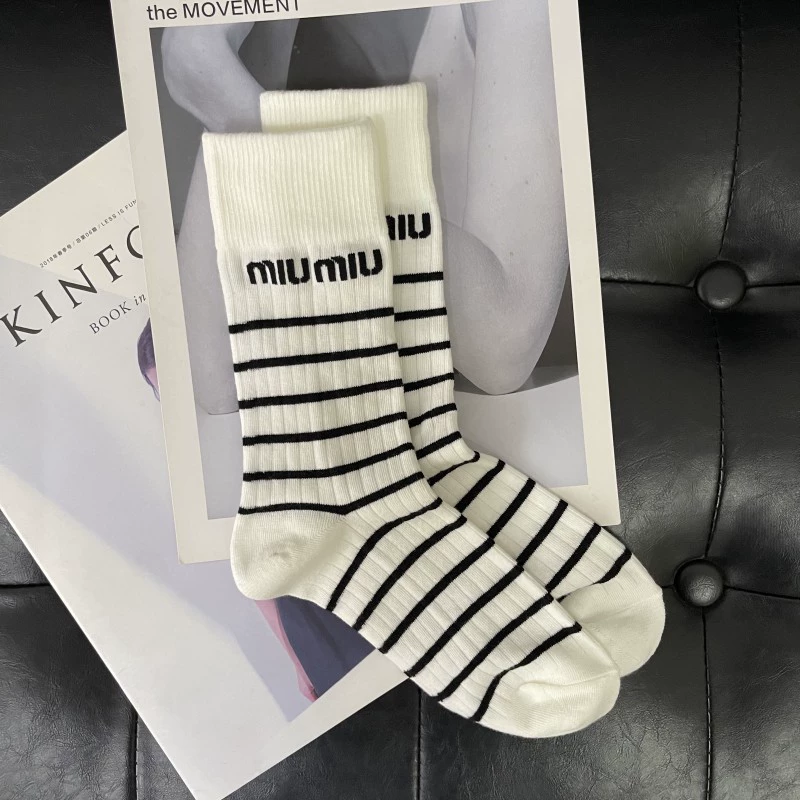 2024 خطاب جديد مخطط قطني رفيع الصيف الرياضة العصرية العلامة التجارية للسيدات الجوارب المتوسطة أنبوب بسيطة ومتعددة الكتب الحمراء الصغيرة الجوارب المشاهير