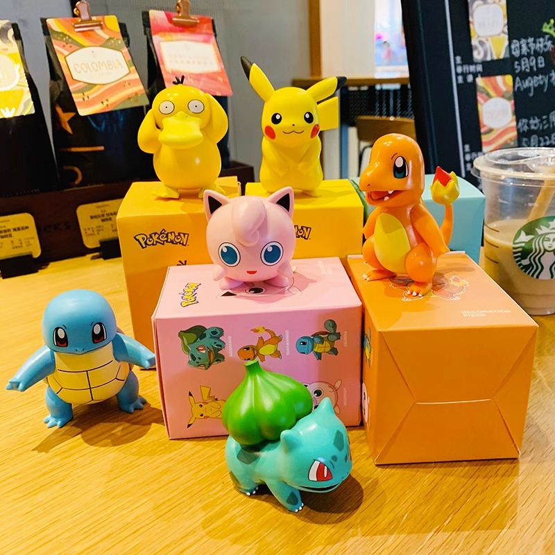 Baokemeng يدوية الصنع سطح المكتب الحلي الصغيرة صندوق أعمى بيكاتشو جيني سلحفاة كده بطة لعبة دمية صغيرة النار دمية تنين