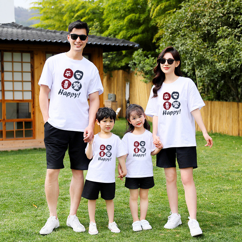 المد الوطني بينغ آن الفرح 2024 الموضة الصينية الجديدة فستان الأسرة فستان صيفي بأكمام قصيرة لعائلة مكونة من ثلاثة