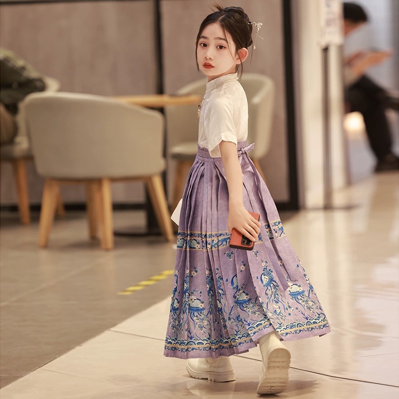 تنورة الفتيات ذات وجه الحصان بدلة أطفال صيفية من Hanfu فستان صيفي على الطراز القديم طراز مينغ فستان قديم 2023 تنورة على الطراز الوطني الجديد