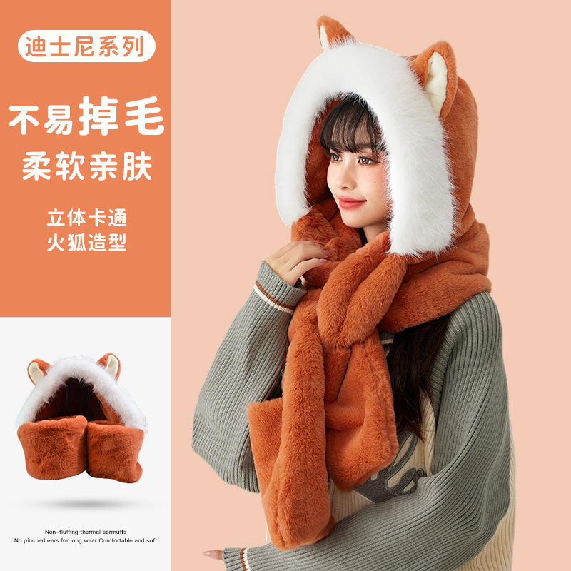 مجموعة وشاح القبعة مكونة من ثلاث قطع 2023 شتاء جديد من فايرفوكس قطيفة مكون من ثلاث قطع قفازات وشاح قبعة نسائية متكاملة