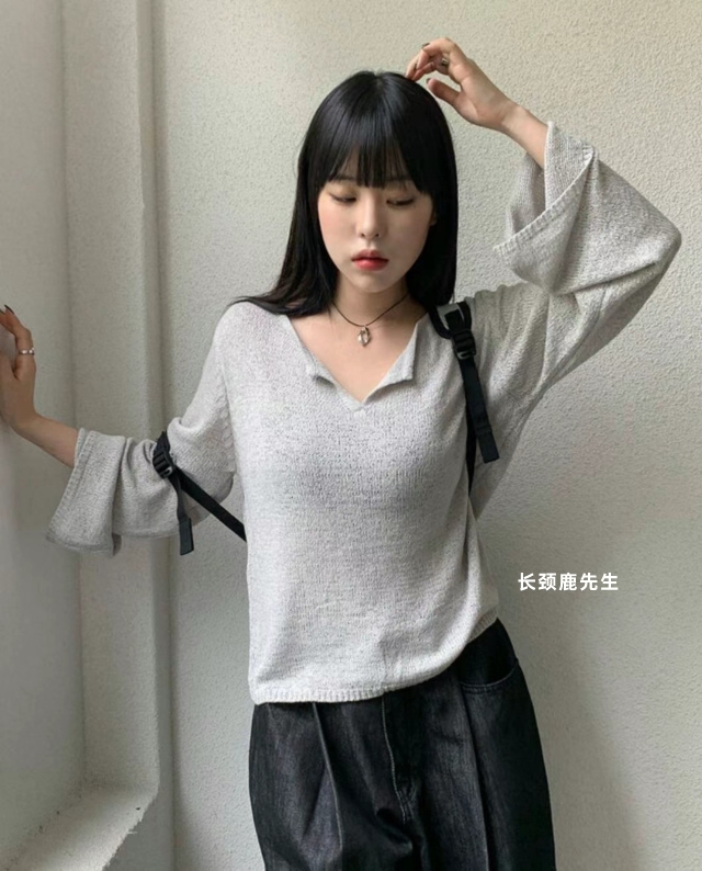 2023 الخريف والشتاء الجديد Dongdaemun Direct Mail Blackberry خط العنق شق رفي