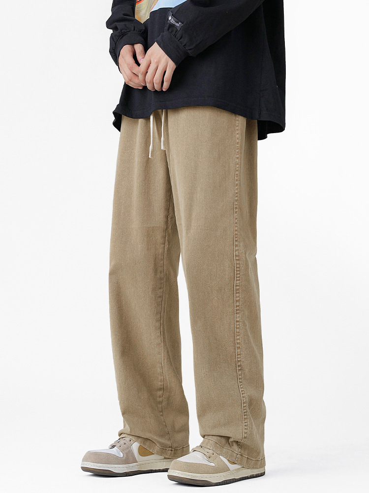 ايه سي يو للملابس الرجالية | ملابس عمال ثقيلة سراويل تقليدية أمريكية لخريف 2024 جينز قطني مغسول مستقيم الساق بنطال ذو قصة أرجل واسعة للرجال