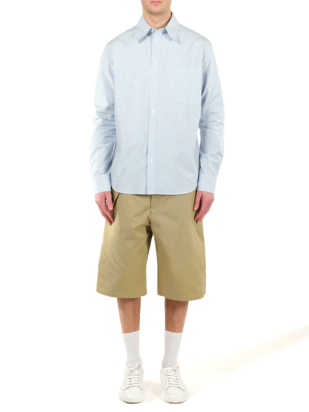 سترة صلبة مخططة باللونين الأزرق والأبيض وقميص بسيط