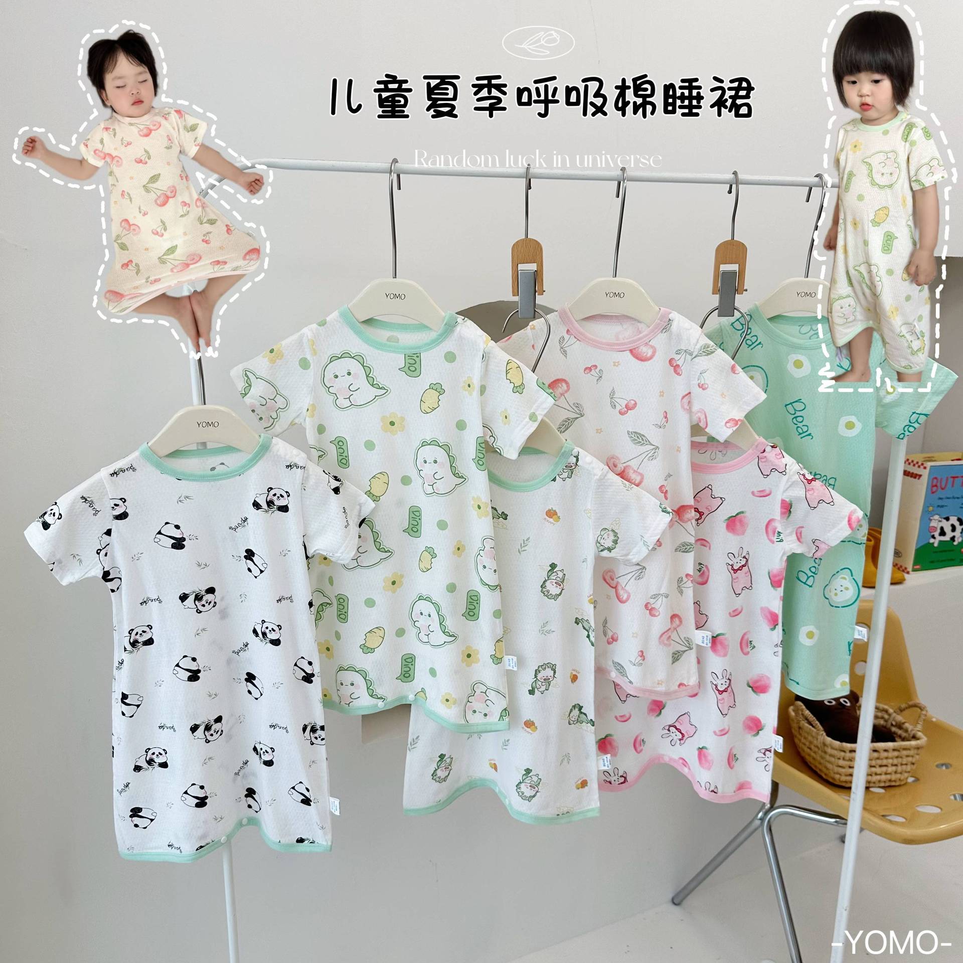 YM3109 الفتيان والفتيات الصيف الجديد القطن شبكة قصيرة الأكمام ثوب النوم جيل من الشعر