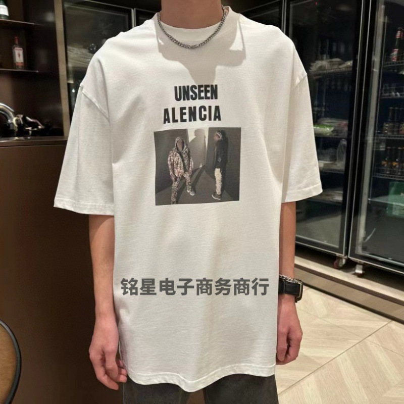 24ss نسخة عالية B الأسرة الربيع والصيف جديد الرجال والنساء الأزواج أوائل الربيع تي شيرت جديد مربع صورة قصيرة الأكمام
