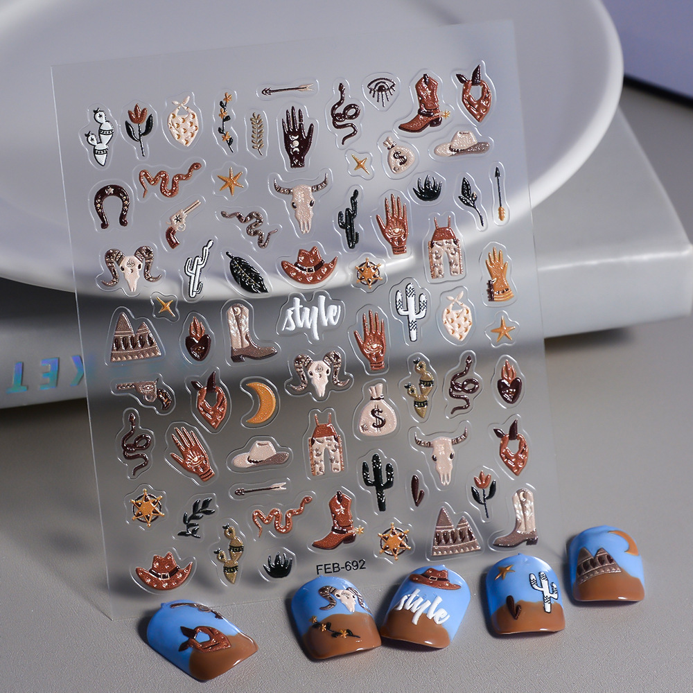 FEB نمط غريب ملابس مغربية مجوهرات أظافر إكسسوارات بوهيمية ملصقات أظافر لاصقة مقاومة للماء