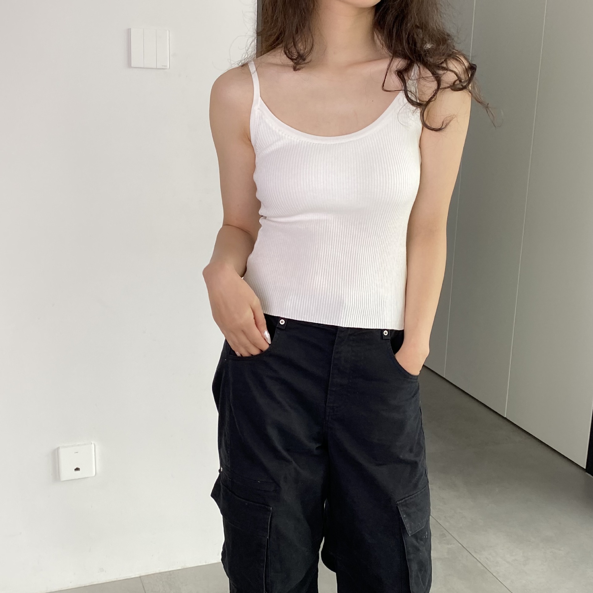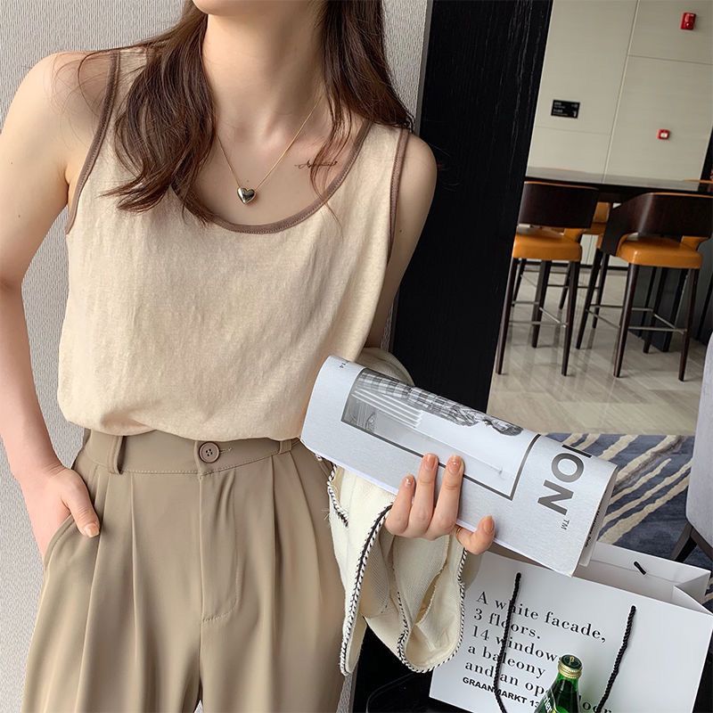 مشروط القطن سترة المرأة الصيف ملابس خارجية فضفاضة الداخلية تصميم الألوان المتباينة المتخصصة الرافعة قاعدة U الرقبة