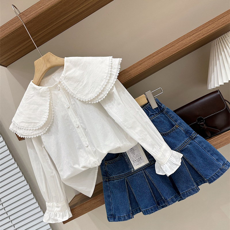 قميص بناتي ربيعي نسائي سويت ليدي طبقات مزدوجة كبير ياقة مكشكشة وأكمام منتفخة وأكمام طويلة