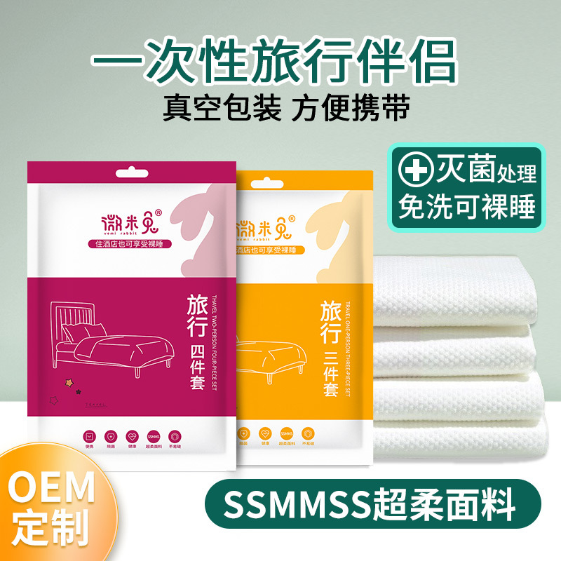 ملاءة سرير للاستعمال مرة واحدة، غطاء لحاف، كيس وسادة للسفر، مفرد مزدوج، ثلاثة أربع قطع، مستلزمات الفنادق، السفر المحمول
