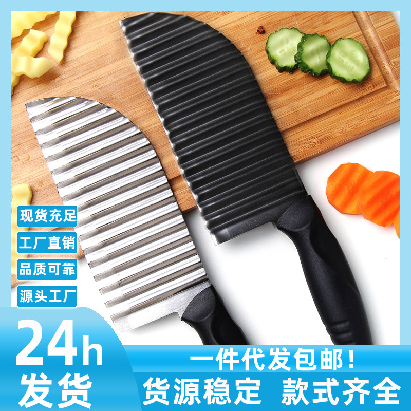 الفولاذ المقاوم للصدأ سكين المطبخ يانغجيانغ نشر سكين موجة سكين البطاطس سكين سن الذئب الجملة البطاطس المقلية سكين سكين المطبخ سكين المطبخ قطع سكين