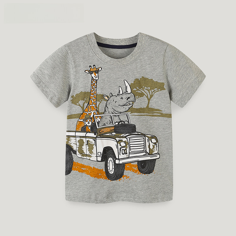 23 النمط الأوروبي والأمريكي ملابس الأطفال تي شيرت الأطفال الكرتون تي شيرت مطبوع الصيف محبوك القطن Crewneck الأولاد