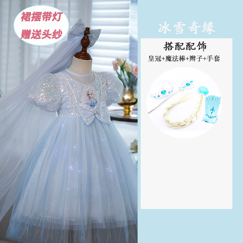 فستان عيد ميلاد صيفي للفتيات إلسا فستان الأميرة المضيئة