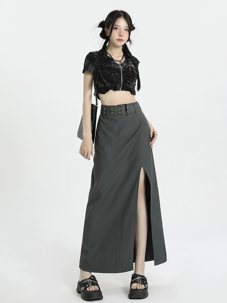 خريف الساخنة فتاة مثيرة شق الهراء بدلة التنورة الطويلة