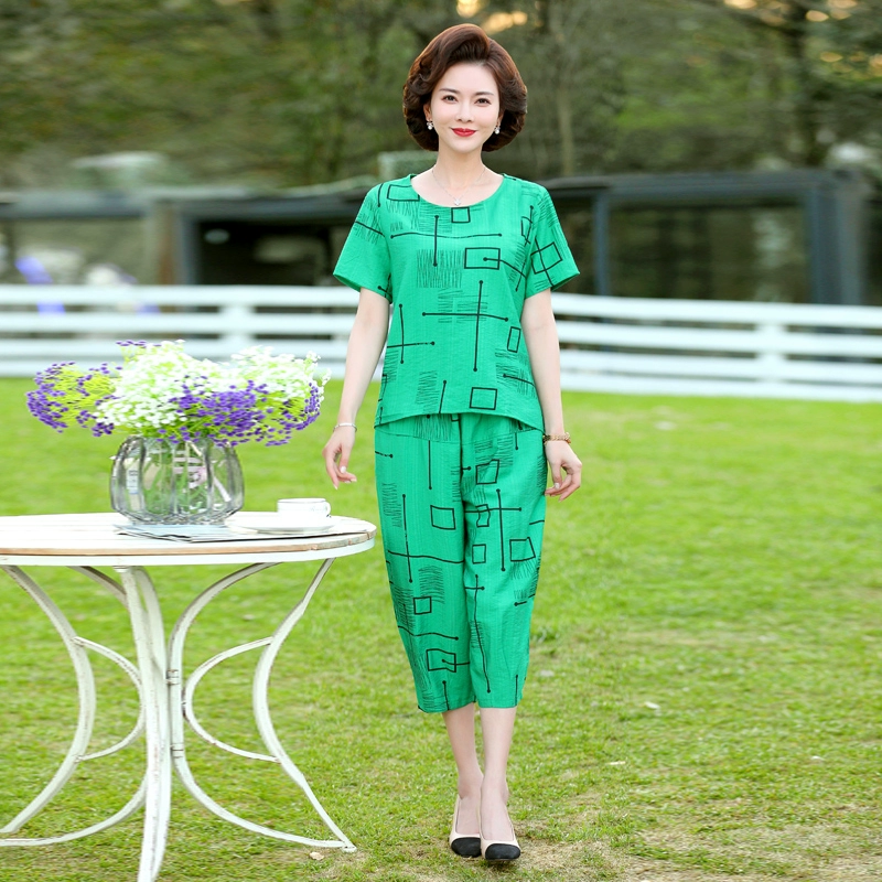 ملابس صيفية فضفاضة للأم من القطن الخالص بأكمام قصيرة في منتصف العمر وكبار السن