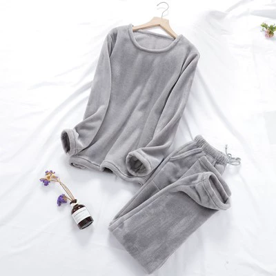 ملابس منزلية شتوية من الفلانيل، بدلات مخملية سميكة للأزواج في الخريف والشتاء، بيجامة مخملية مرجانية فضفاضة كبيرة الحجم بلون سادة