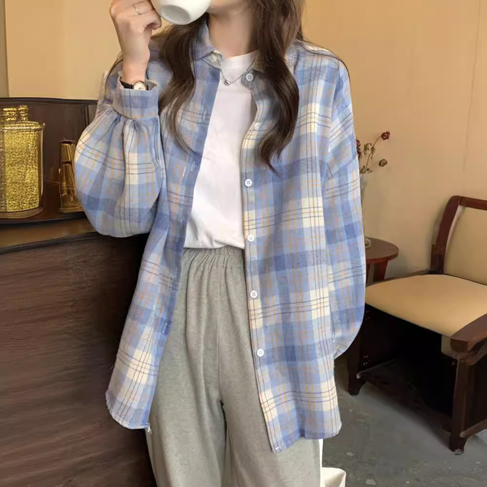 قميص واقي من الشمس متوسط الطول منقوش بأكمام طويلة معطف نسائي لصيف 2024 قميص رقيق للنساء الصغيرات