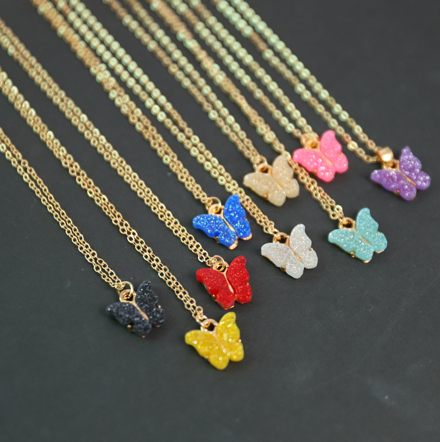 عبر الحدود لون جديد الاكريليك فراشة قلادة الفلورسنت الأزياء قلادة ذهبية بسيطة