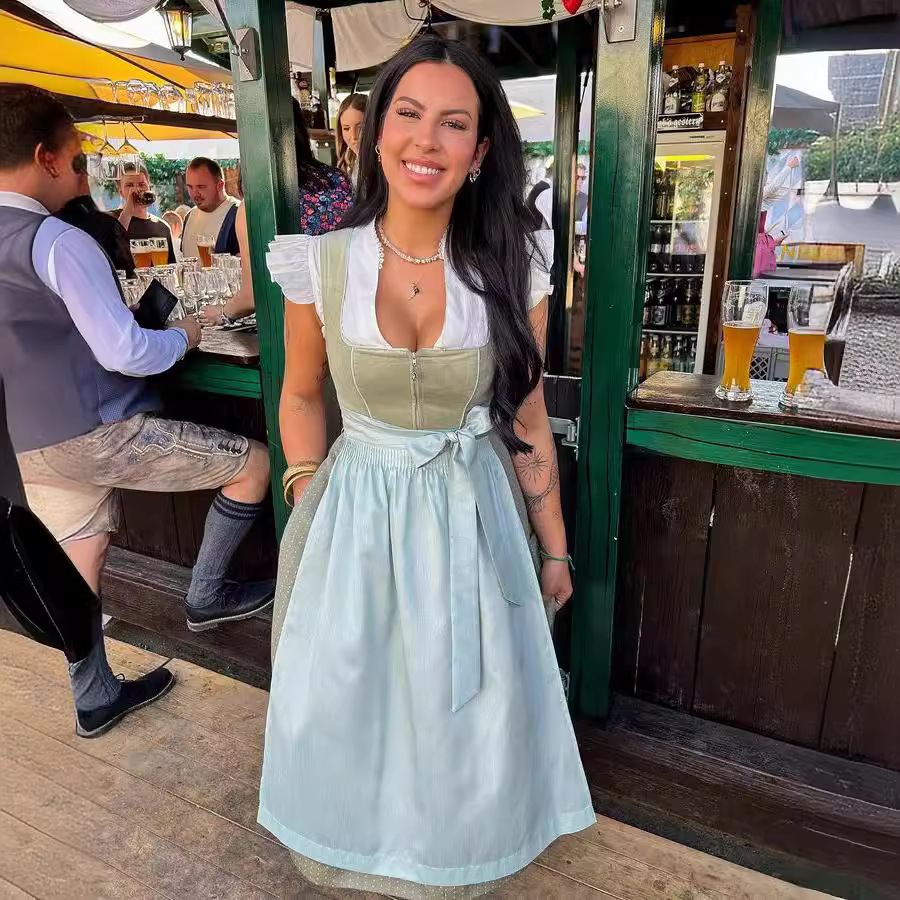 بدلة بيرة ميونيخ جديدة بمقاس كبير لعام 2024 فستان طويل بأكمام قصيرة ومطبوع برباط بدلة أداء المسرح