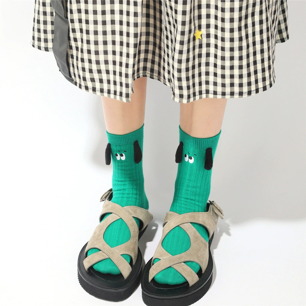 لطيف يدوى -SEWING كبيرة الأذن الكرتون القطن جورب تطريز