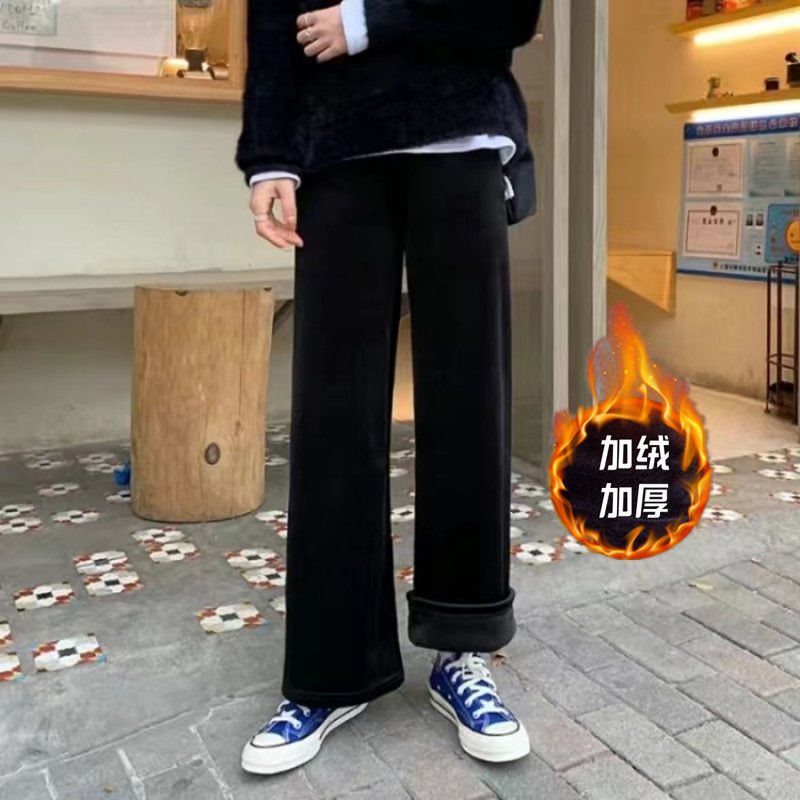 الذهبي المخملية واسعة الساق السراويل النسائية الربيع والخريف عالية الخصر الجرعات فضفاضة مستقيم قلادة التخسيس كل مباراة السراويل مبطنة الصوف غير رسمية