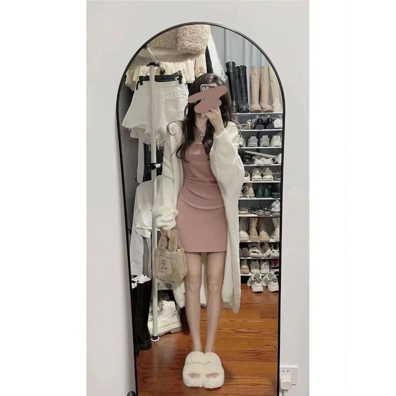 معطف كسول متوسط الطول فوق الركبة من فرو المنك المخملي معطف نسائي فضفاض للخريف والشتاء معطف كارديجان محبوك أنيق عتيق