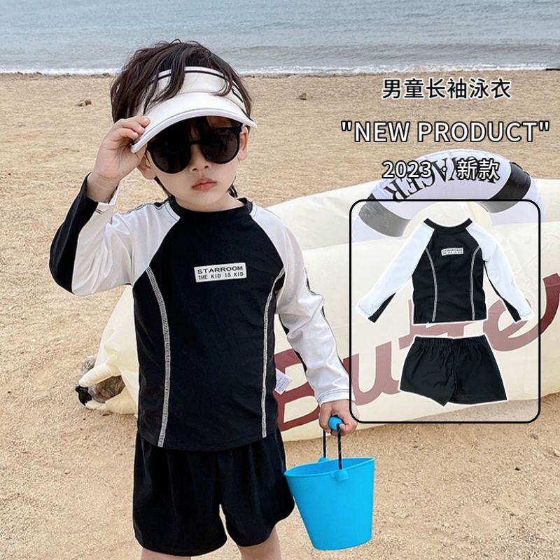 بدلة سباحة للأطفال للأولاد 2024 بدلة جديدة مقسمة للأطفال الصغار والمتوسطة بأكمام طويلة بدلة سباحة ربيع حار