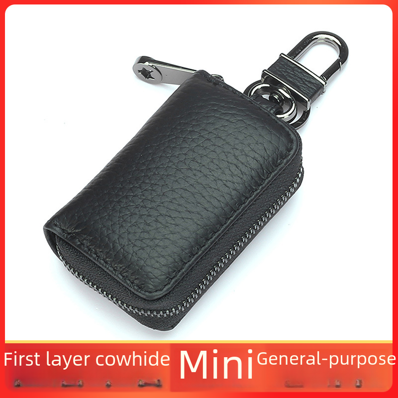 حقيبة مفاتيح سيارة للتجارة الخارجية للرجال صغيرة للرجال والنساء تحمل شعار جلد طبيعي حامل مفاتيح بسحاب حقيبة مفاتيح مدمجة