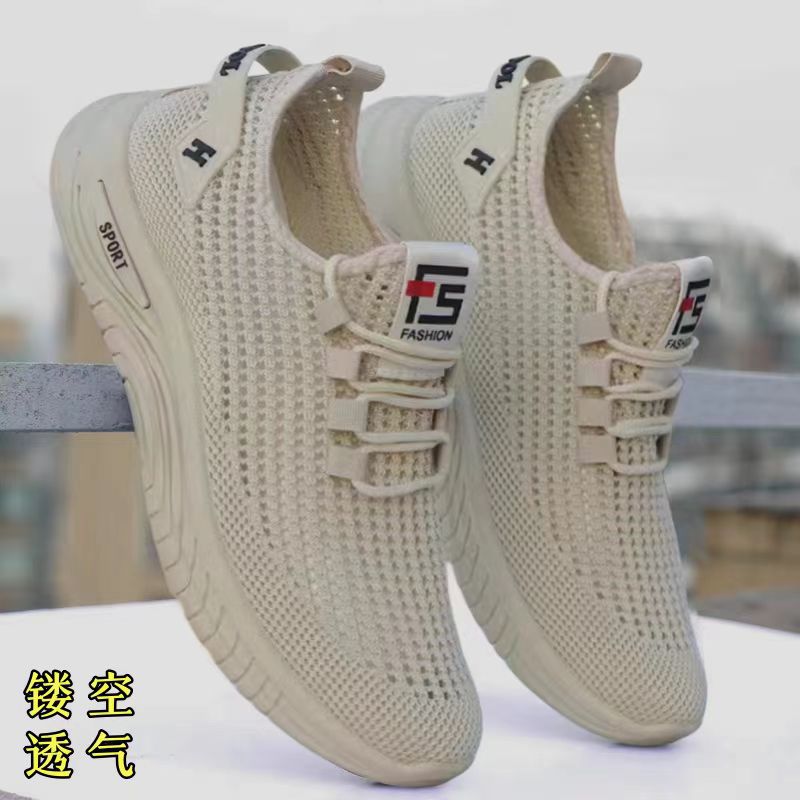 حذاء رياضي شبكي مجوف سهل الارتداء للرجال صيفي شبكي قابل للتنفس خفيف الوزن من الأسفل حذاء رياضي كاجوال بفتحات