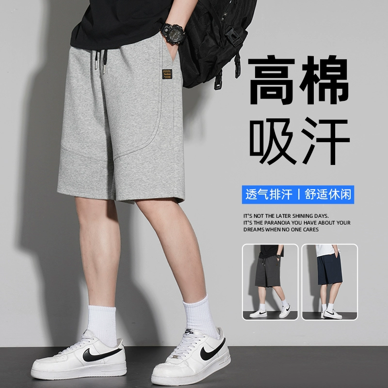شورت رمادي للرجال صيفي رفيع وفضفاض مستقيم، بنطلون رياضي ثقيل الوزن من خمس نقاط، سروال رياضي غير رسمي
