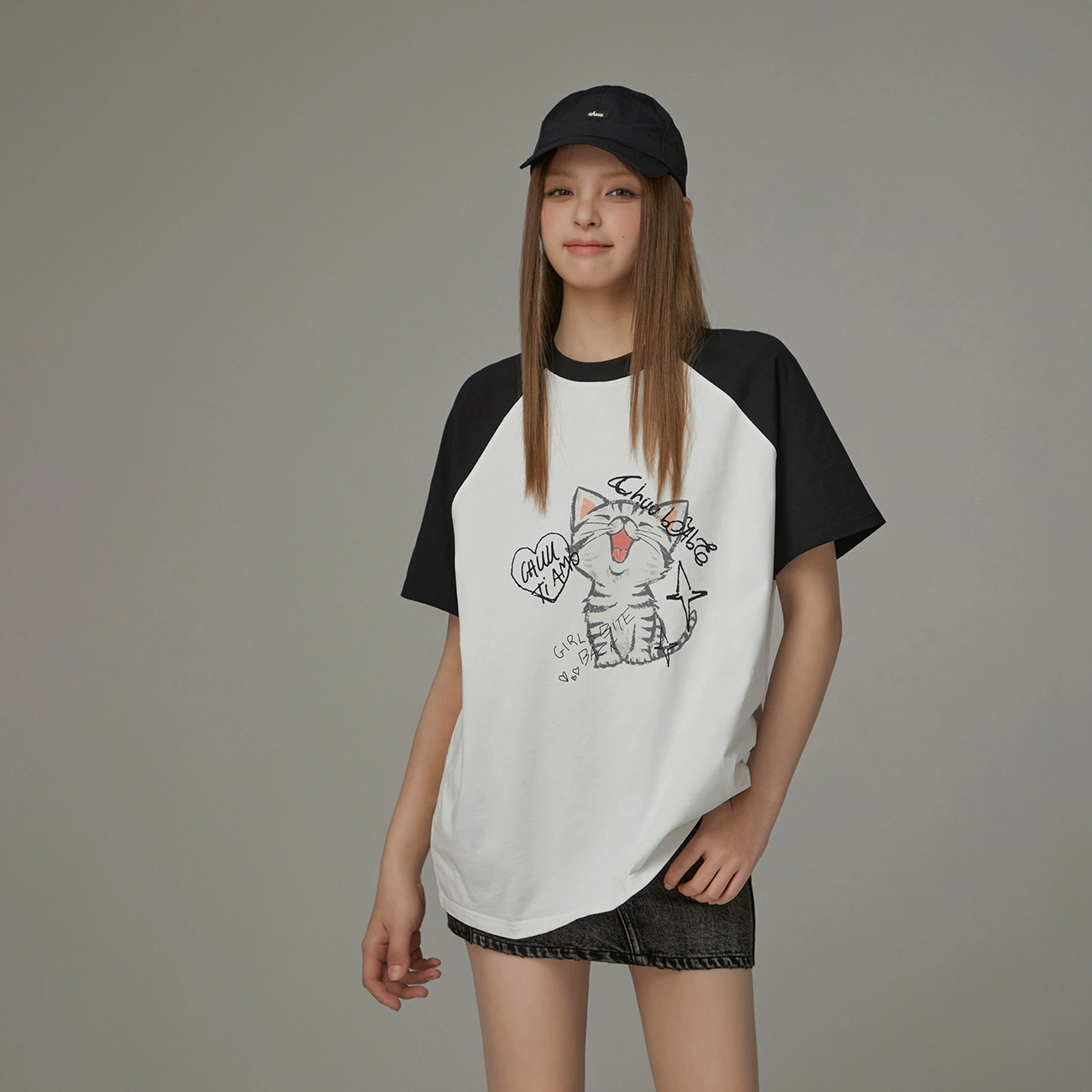 CHUU Cat بأكمام قصيرة 2024 رسوم متحركة صيفية بألوان متباينة