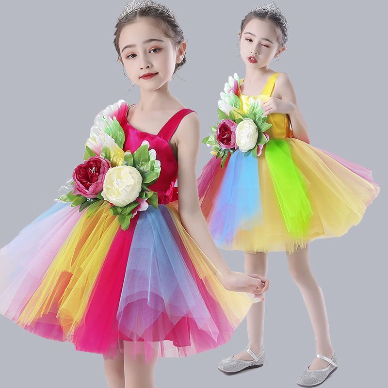 فستان أداء الرقص للأطفال الأميرة زهرة الجنية الأداء الترتر الشاش تنورة الأطفال زهرة توتو تنورة