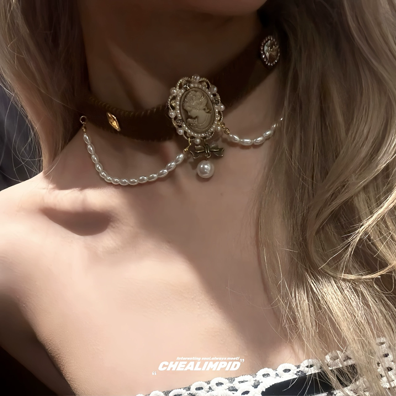 قلادة مايلارد بورتريه بياقة لؤلؤية نسائية من القطيفة