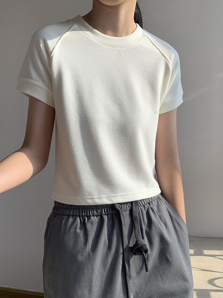 محبوك الكتف قصيرة الأكمام تي شيرت 2024 الصيف رقيقة سليم صالح جديد التخسيس كل مباراة تصميم تحسس القاعدة العليا