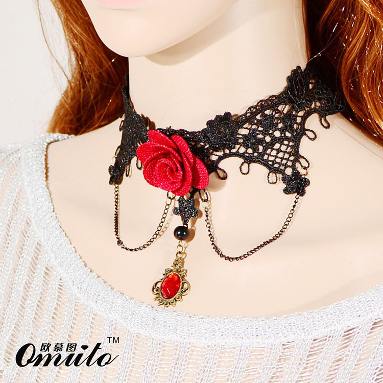 قلادة دانتيل وردة حمراء على شكل زهرة حمراء قلادة جوهرة الترقوة رسن الترقوة إكسسوارات ملابس داخلية مثيرة