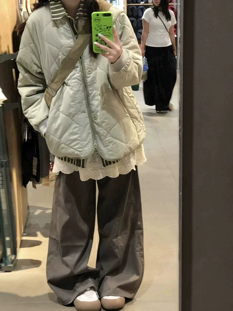 معطف شتوي الماسي فضفاض على الطريقة اليابانية معطف من القطن الراقي